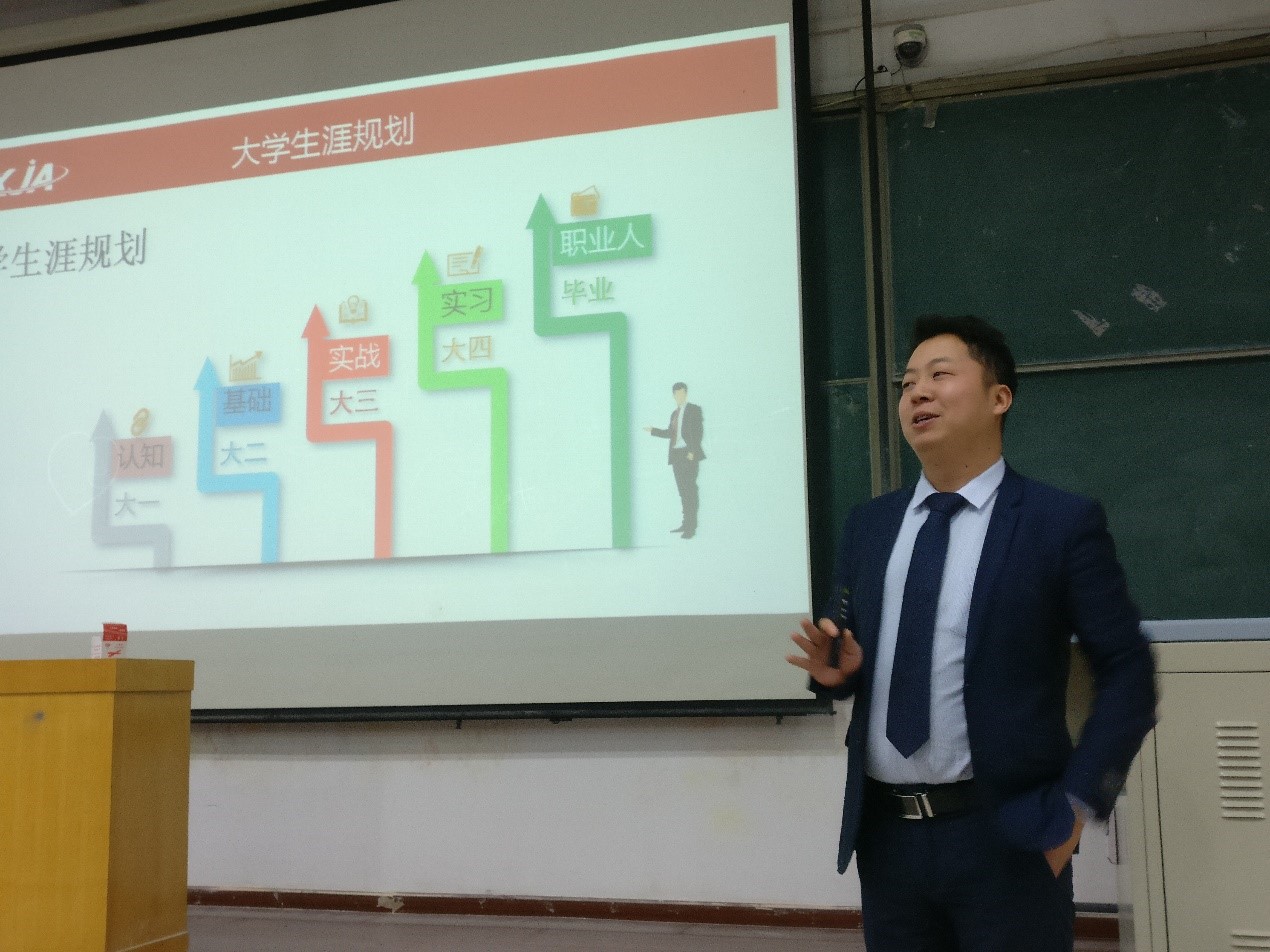 特聘教授汪洋在金明综合楼2306教室为18级新生进行互联网行业认知报告。