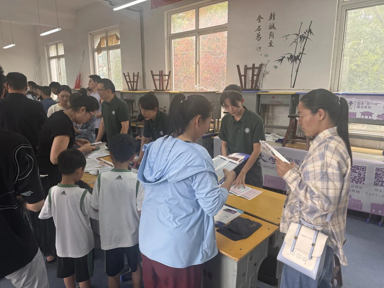 校内接待组的志愿者们热情地为每一位到访者现场答疑解惑。