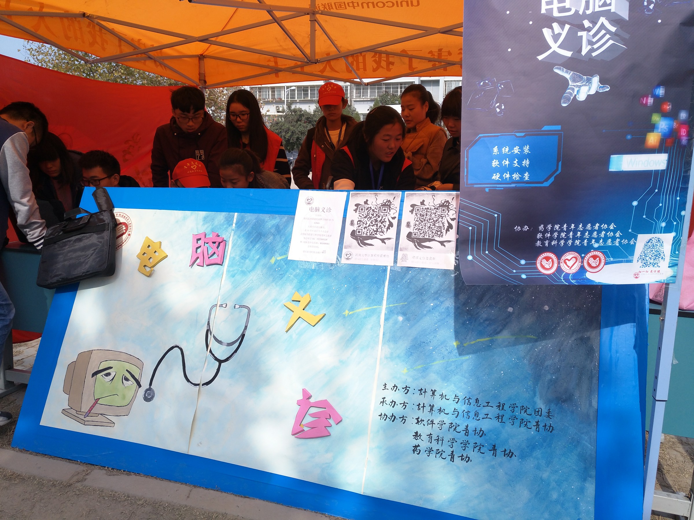 青协协办,在各院青协的大力合作下志愿者们为全校师生解决了许多电脑问题。