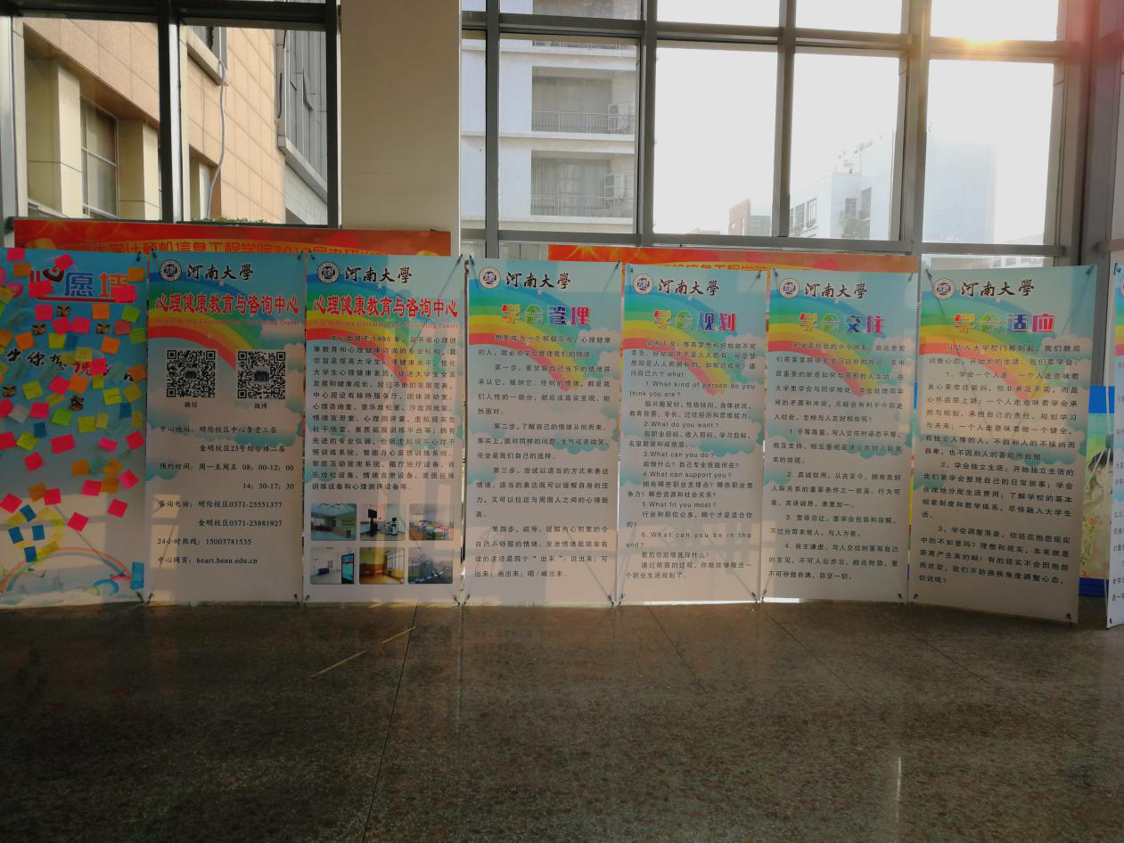心理工作站和院学生会共同主办了系列宣传活动,活动的主要目的是面向全院学生普及基本的心理健康知识和心理卫生知识,旨在通过丰富多彩的活动,促进同学们能造就健康的自我,陶冶情操,建立自信,提高人际交往能力,从而增强心理素质。