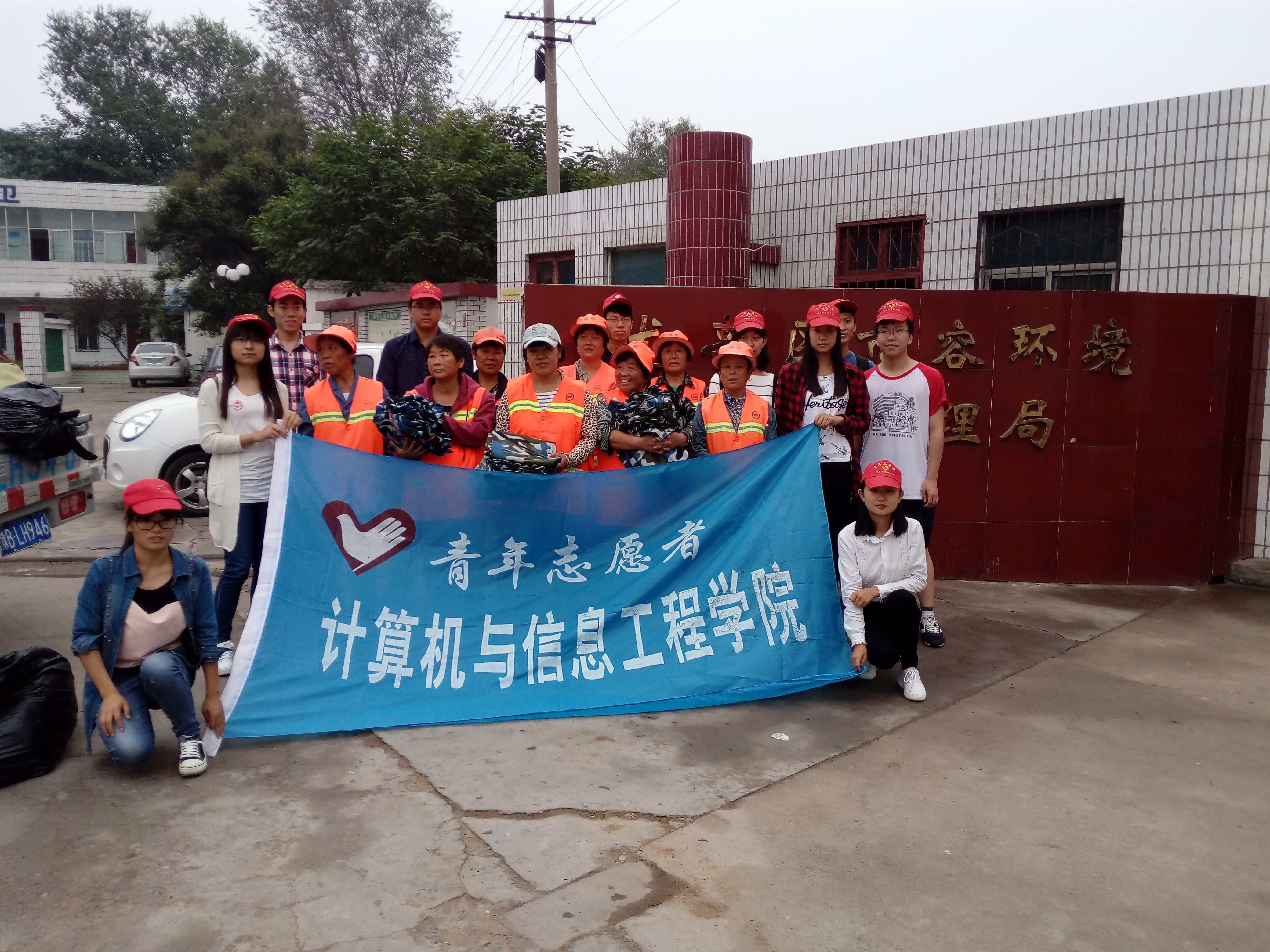 等五院青年志愿者协会联合将各自筹集的衣服共同送到龙亭区环卫站环卫工人的手里。捐献军训服,一件很简单的事,举手之劳,但对于那些环卫工人来说,这就是天冷时一件挡风的风衣,一件微暖心头的衣裳。将自己的东西捐赠给需要的人,这就是奉献爱心。赠人玫瑰,手留余香。在自己忙的不亦乐乎的时候,忘记了军训带来的疲劳,忘记了生活中不愉快的小情绪。