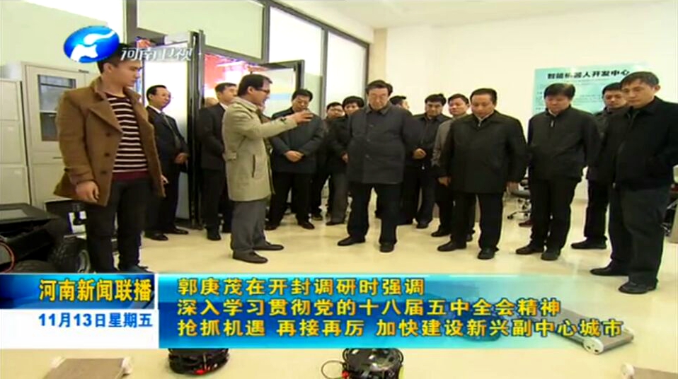 2015年11月12日上午,省委书记、省人大常委会主任郭庚茂在开封市调研期间,来到位于开封市经济技术开发区的德豪光电科技园区,视察“河南大学中原硅谷科技发展研究院”的建设情况。开封市市委书记吉炳伟、市长侯红,我校党委书记关爱和、副校长宋纯鹏等陪同视察。
