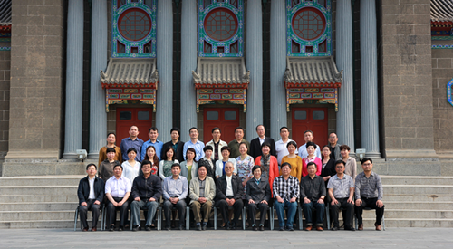 捐赠励志石,并在明伦校区大礼堂合影留念。