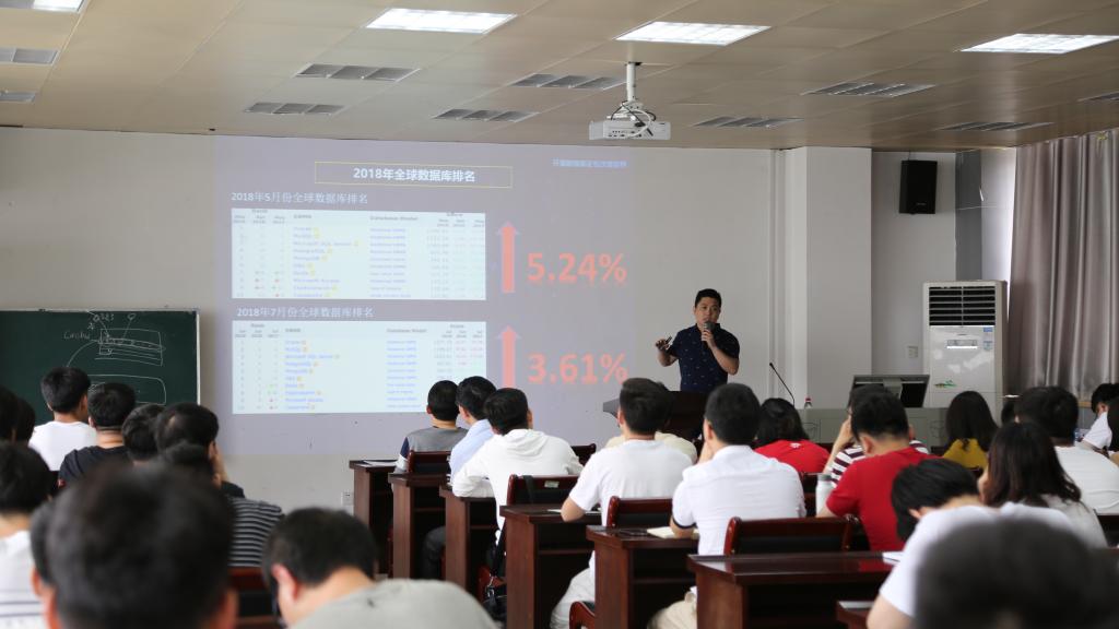 报告会上,李忠良首先介绍了redis数据库和传统数据库的区别。在大数据时代各种数据的传输量和处理量都有一个显著的激增,内存数据库成为了一个良好的解决途径,它很好的满足了未来在互联网背景下因大数据处理而出现的高性能数据存储服务。随后李忠良简述了一种云计算的PAAS平台服务模式,该模式可以把服务器平台作为服务提供的商业模式。在报告中重点讨论了如何把内存数据库托管到云计算环境下的PAAS平台。通过一个企业实际案例介绍了内存数据库托管于PAAS存在的问题及解决方案,探讨了一种内存数据库产品的访问集群异常处理解决方案、性能统一监控方案和性能统一监控方案。报告后李忠良结合自身工作的经历给予河大学子学习、工作上的一些建议。随后,同行的开发部部长郭斌高级工程师为大家分析了信息产业的现状,介绍了中兴公司的有关情况,并为同学们进入软件行业提供了宝贵建议。