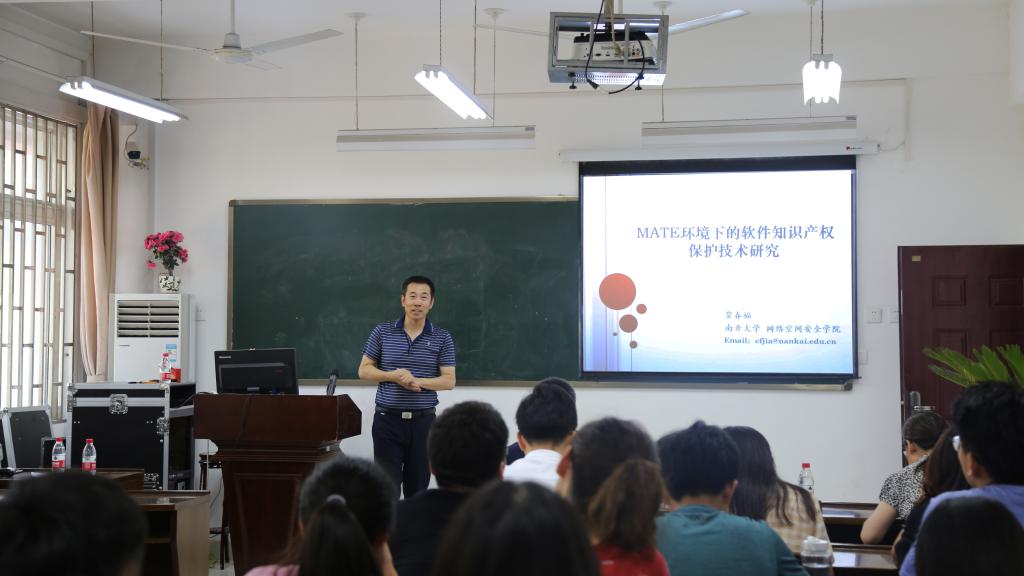 贾春福教授首先就科研与人生的发展规划给在坐的研究生进行了启迪与建议。之后简要介绍了南开大学信息安全实验室的各个研究方向。然后对MATE环境下各种软件保护技术进行了由浅入深地讲解。为什么要进行软件保护?软件保护问题是什么?如何进行软件保护?软件保护的发展趋势是什么?尤其是在讲解如何进行软件保护时,从问题如何发现出发,介绍如何解决问题,如何不断优化改进,整个研究思路与过程都详尽体现。对于我们如何开展科研,如何做出顶级科研很有启迪与借鉴意义。最后就学生提问的问题进行了回答。
