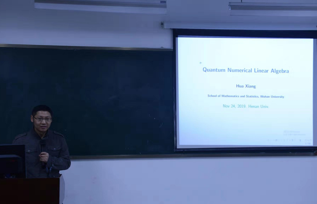 向华教授首先回顾了量子算法的发展,特别是用于求解线性代数系统的HHL,然后切换到数值线性代数问题的量子算法,包括循环预条件器、正则化最小二乘、总最小二乘和三对角特征解等。师生互动环节,向教授耐心和细致地解答了在场师生提出的各类相关问题。报告在师生的热烈掌声中结束。在场师生纷纷表示,聆听此次报告受益匪浅,对今后的科研工作具有重要借鉴作用。