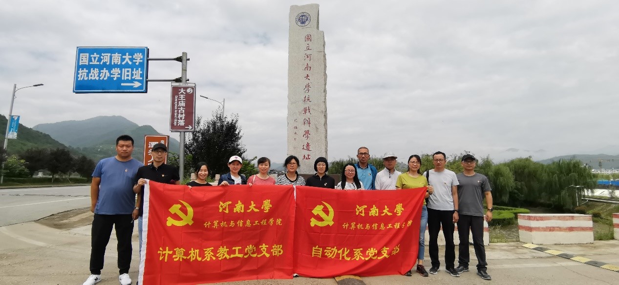 计算机系、自动化系教工党支部联合开展了“重走办学路 感悟家风情”主题党日活动。两个支部教工党员奔赴栾川、嵩县两地,重走学校抗战办学之路,凭吊敌前办学旧址,开展爱校荣校教育活动。