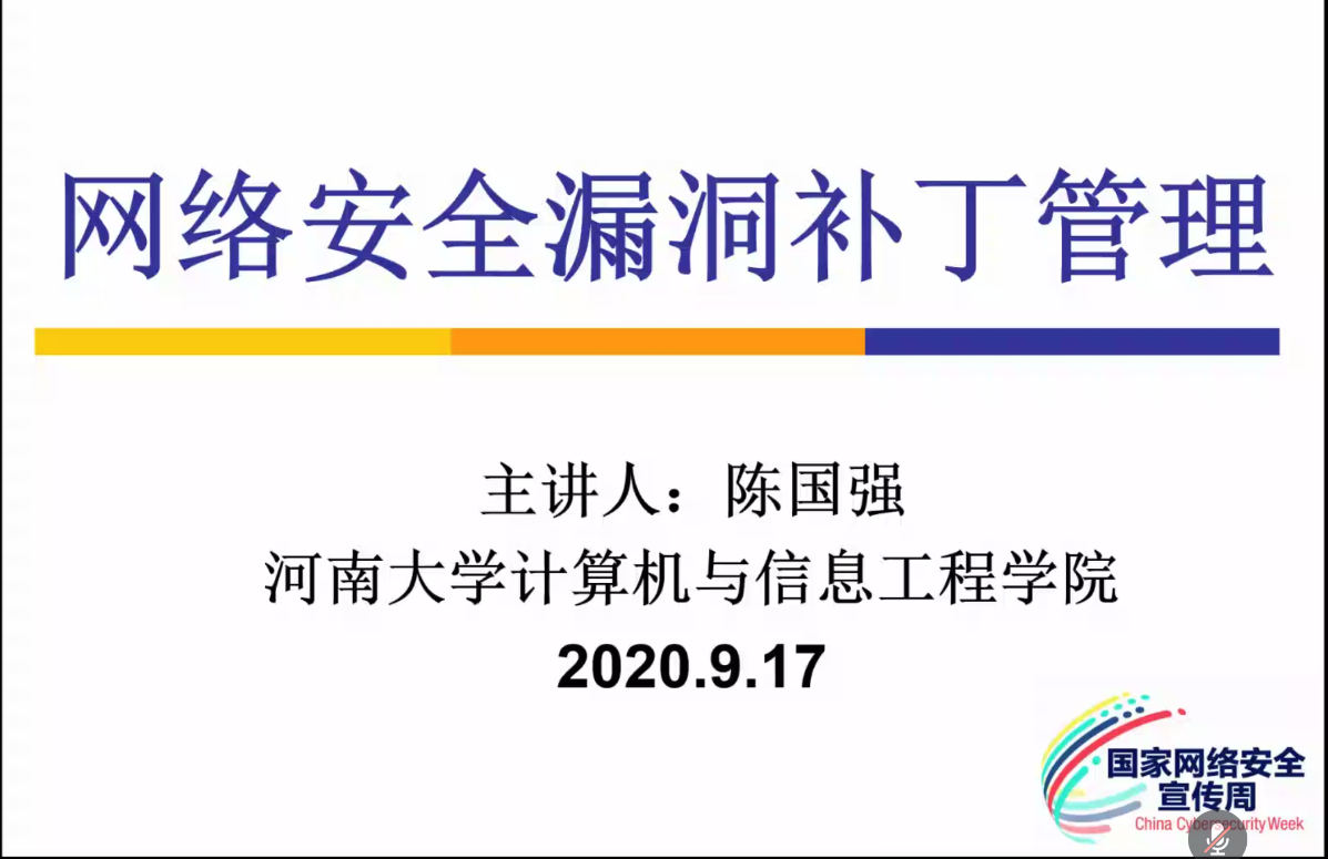 陈国强老师与韩志杰老师对网络安全下的漏洞补丁以及网络上存在的安全威胁进行讲解