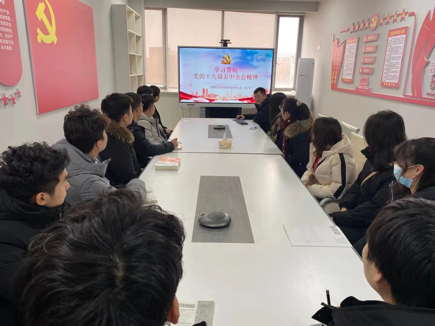 各支部书记以“学习贯彻党的十九届五中全会精神”为主题,重点围绕深刻认识党的十九届五中全会的重大意义、准确把握决胜全面建成小康社会取得决定性成就的深刻含义、深刻理解中央对“十四五”时期形势的重大判断、明确领会“十四五”时期经济社会发展主要目标和到二〇三五年远景目标、深入贯彻新发展理念,推动高质量发展、认真落实“十四五”时期经济社会发展的重点任务等六个方面,对《中国共产党第十九届中央委员会第五次全体会议公报》进行了全面宣讲和解读。随后,各党支部成员纷纷结合自己的实际学习生活科研经历,分享了学习党的十九届五中全会精神的心得体会。