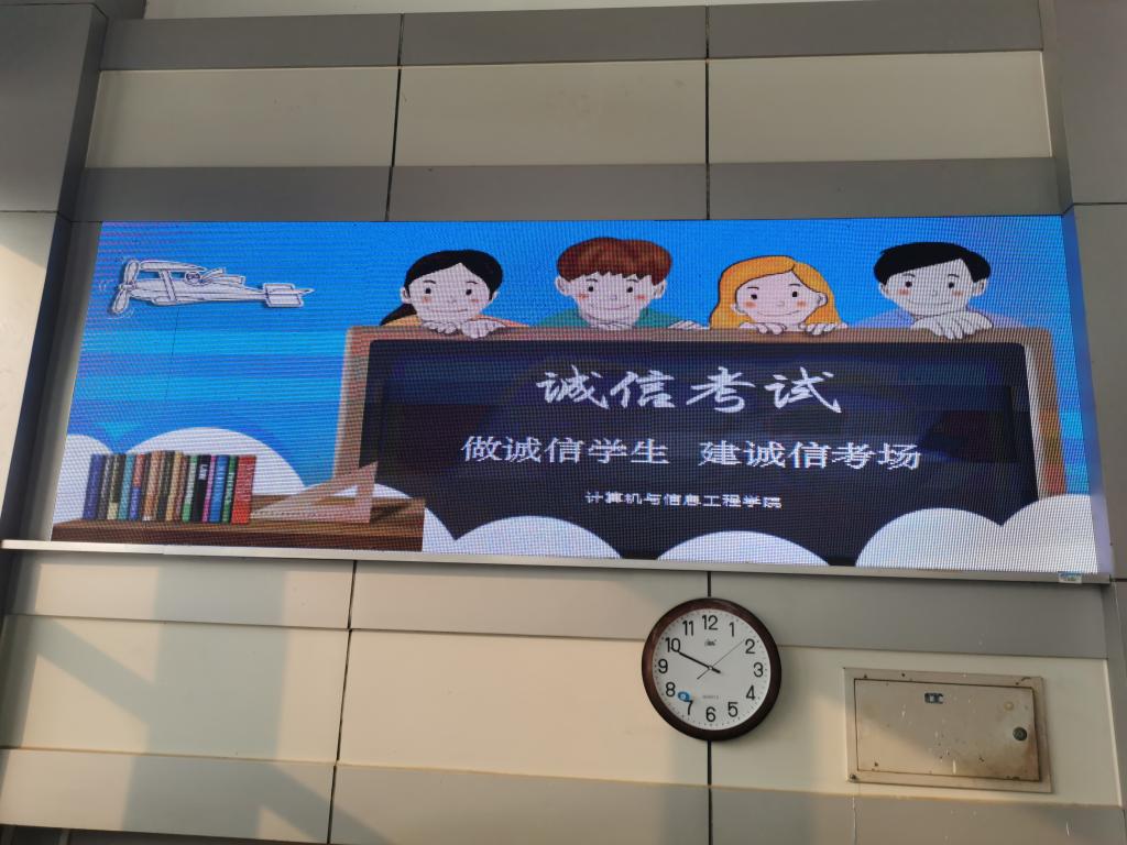 各年级召开诚信考试动员大会,及时传达学校有关考试规定以及考试违纪处分条例等,利用电子屏、QQ群、微信群等宣传诚信考试内容,敦促同学们做诚信学生,建诚信考场,展示良好大学生形象。