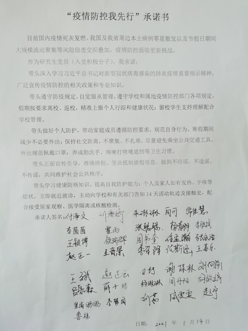 研究生各党支部积极组织开展 “疫情防控我先行”主题党日活动。