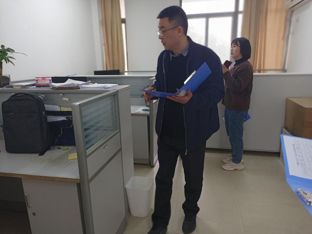 党委书记吕冰和副院长柯杨带队,逐个办公室依标依据进行评比打分,评出“文明办公室”,随后将授予“文明办公室”流动红旗。