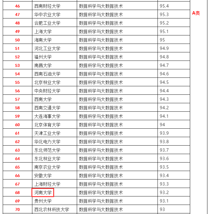 数据科学与大数据技术专业排名继续呈现上升态势,较上年前进5个位次,以68名的优秀成绩位列A类,表明大赢家足球比分
