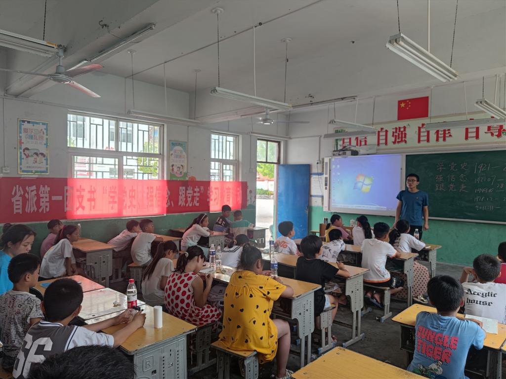 团委书记程前帅老师给孩子们普及了中共历史的重大事件,中国共产党的成立、革命斗争、取得胜利,孩子们听得格外认真、心情愤慨、内心激昂。