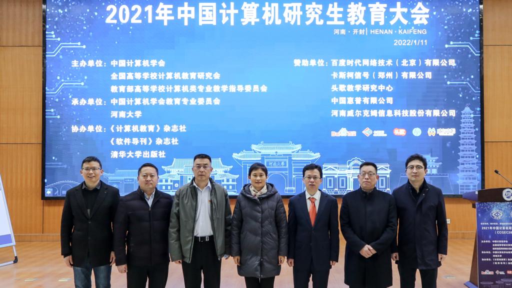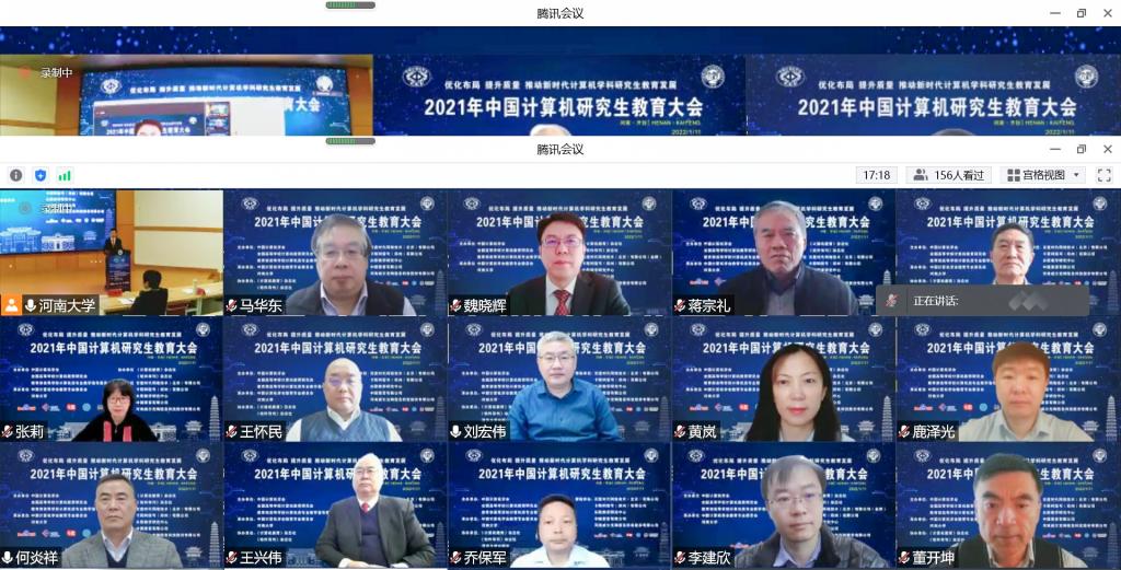 为进一步推进计算机研究生教育改革,提升计算机研究生教育质量和人才培育水平,促进计算机研究生教育经验交流,2022年1月11日,2021年中国计算机研究生教育大会在我校召开。会议由中国计算机学会(CCF)主办,CCF教育专业委员会、河南大学承办,《计算机教育》杂志社、《软件导刊》杂志社、清华大学出版社协办。会议采用线上方式,以“优化布局、提升质量,推动新时代计算机学科研究生教育发展”为主题,设置1场大会特邀报告、3个分论坛,邀请30余位专家学者共商人才培养与教育改革大计。