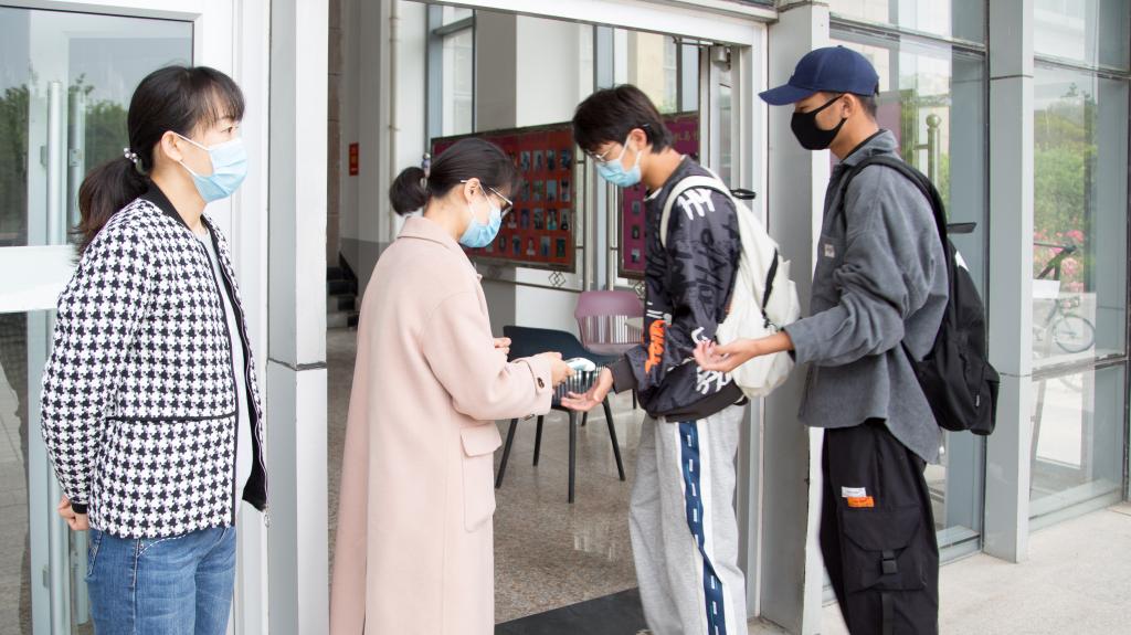 也在计算机大楼门前设置红外测温器,对进入大楼的师生逐个测温,提醒进入大楼后全程佩戴口罩,坚决将疫情拒之校门之外。