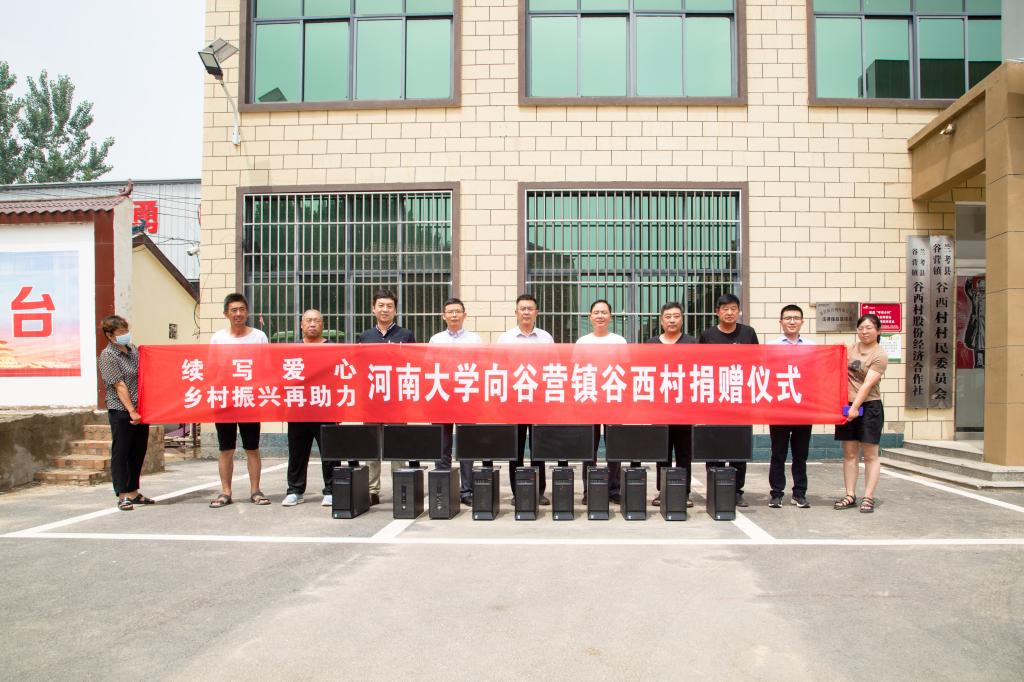 再向谷西村捐赠电脑20台,用以改善基层办公条件,提升办公效率。村支书李民波说道:“近年来,河南大学支持村里的发展,从脱贫攻坚到乡村振兴,从疫情防控到乡村教育,从关注青年就业到关爱青少年成长,都发挥了积极影响作用,代表乡村父老表示真诚感谢”。