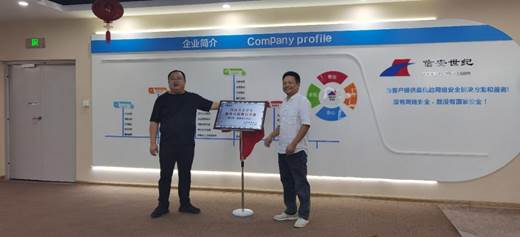 院长乔保军和河南信安世纪科技有限公司总经理刘鹏飞共同为“河南省大学生校外实践教育基地-新工科(信息安全专业)”揭牌。