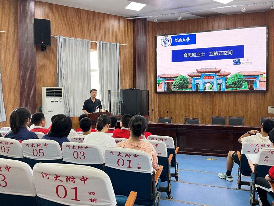 教师张磊受邀到河南大学附属中学进行“育忠诚卫士•卫第五空间”的报告。报告从网络安全形式、全球安全的热点事件、常见的网络攻击以及信息安全法律法规进行讲解。张磊老师从日常的安全小事件包括微信点赞、扫一扫等事件开始分析我们所处的网络环境,分别对云安全、应用安全、网络安全、信息安全以及用户安全进行讲解。同时又从国际形式和国内形式对近期的全球热点的安全事情进行分析,并引出习近平总书记的讲话“安全是发展的前提,发展是安全的保障,网络安全和信息化是一体之两翼、驱动之双轮”“没有网络安全就没有国家安全”。最后张磊老师对同学提出勉励,要努力学习文化知识,树立远大理想,对国家信息安全建设做出贡献。