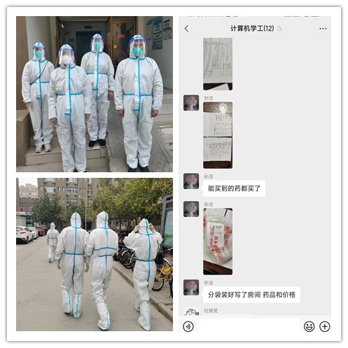 党委书记吕冰、副院长柯杨、辅导员孙洁、行政人员肖天杰,他们化身“大白”抗战在防疫第一线。每天早上六点就身穿防护服,一趟趟往返于东苑宿舍各个楼层,为学生送上美味可口的饭菜。他们是守护员,力所能及地帮助学生购买药品和生活必需品。他们是传递员,帮助学生从实验室向宿舍传递书籍等学习用品。他们是安全员,不做志愿服务时,巡视大赢家足球比分