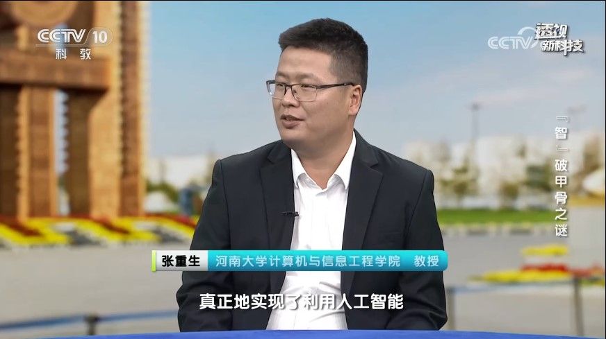 关于人工智能与甲骨文结合的研究进展,张重生在节目中指出: