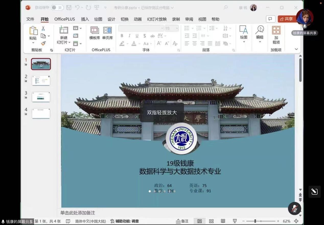 2023届考取西安电子科技大学的李洁、东北大学的钱康和北京工业大学的王英明三位同学,通过腾讯会议方式,线上为2024届报考研究生的同学进行了一场经验分享会。会议由2020级辅导员鲁建国主持。