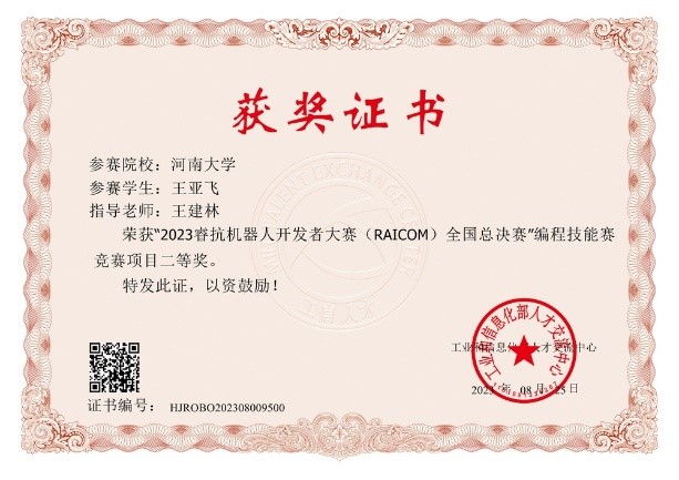 由工业和信息化部人才交流中心、RoboCom国际公开赛组委会联合主办的2023睿抗机器人开发者大赛(RAICOM)编程技能赛全国总决赛于8月18日线上举行。经过一个多月的评审及公示,大赢家足球比分