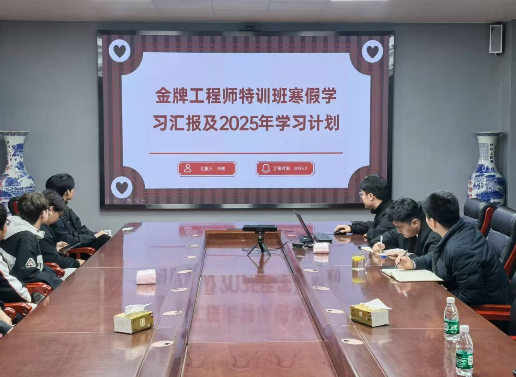 会上,15名同学依次发言,汇报寒假学习情况与2025年学习计划,大家从学习成果、计划制定初衷、执行方法、改进与调整等方面进行分享。有的同学通过线上线下结合,系统学习专业课程、攻克知识难点;有的同学坚持每日学习,不断提升英语水平;还有同学分享参加科研项目,在团队协作与专业技能应用方面的成长。同时每位同学都结合自身情况,制定了新学期的学习计划,明确了努力方向。