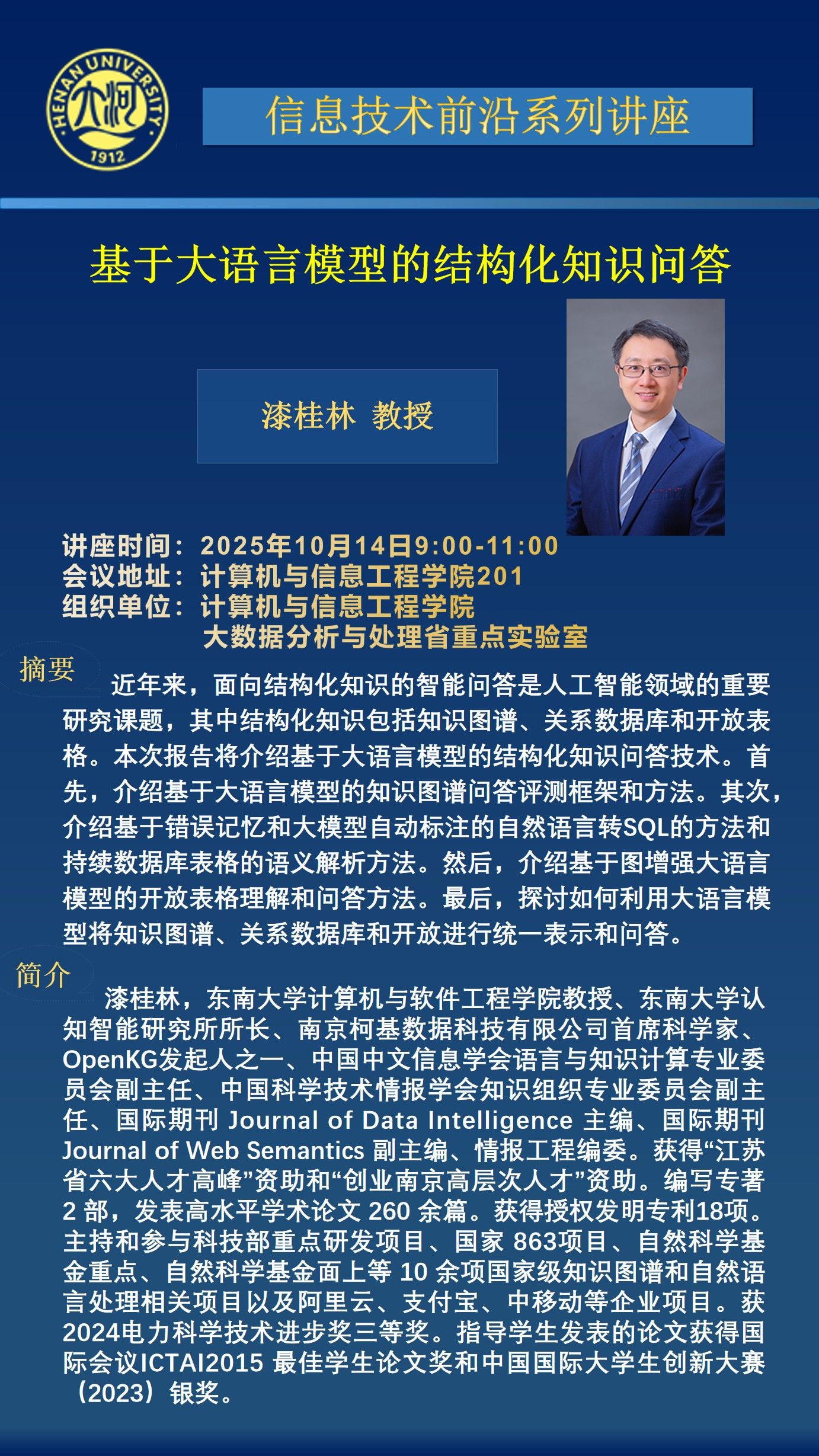 漆桂林:基于大语言模型的结构化知识问答(时间:10月14日)