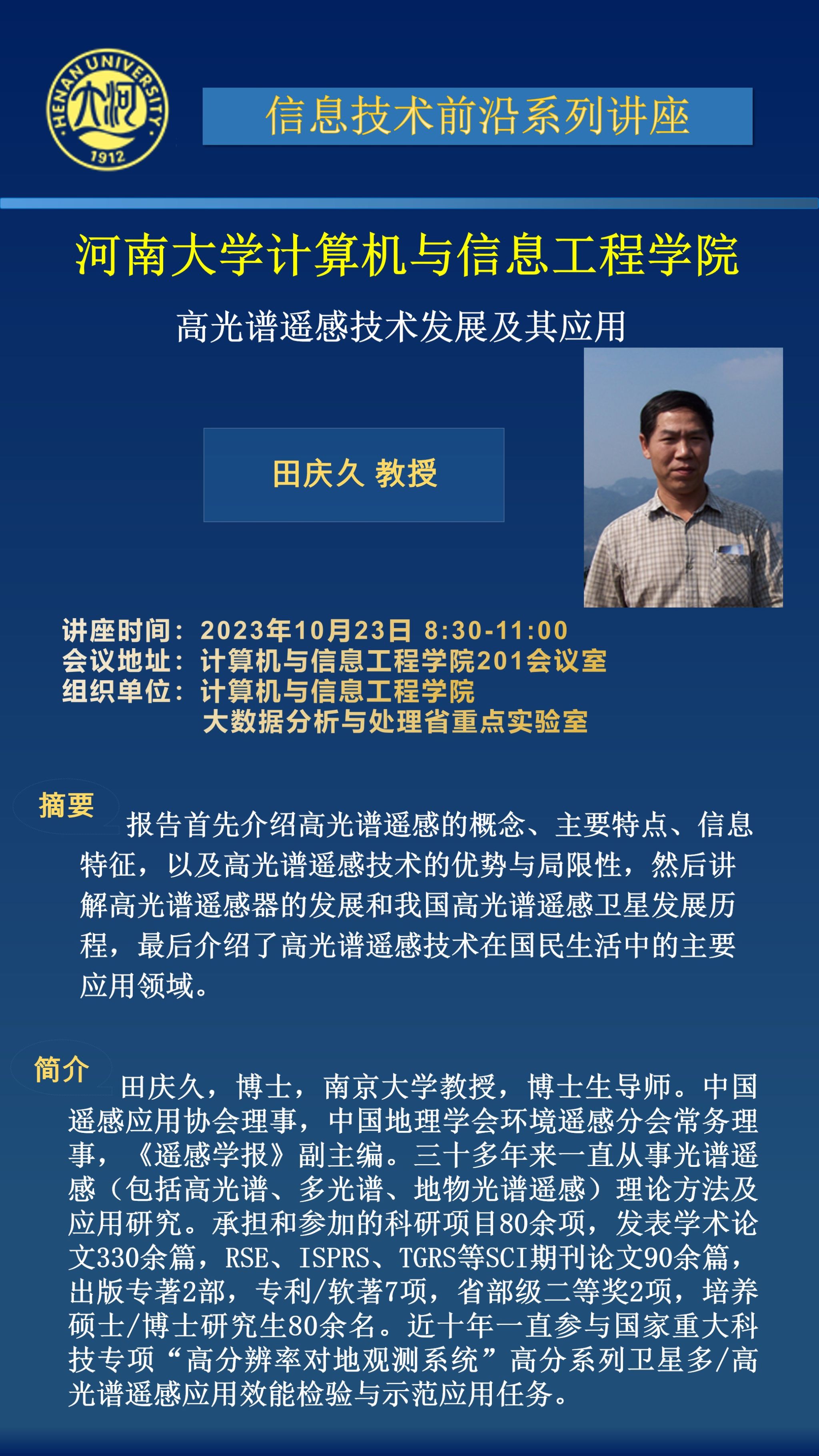 田庆久:高光谱遥感技术发展及其应用(时间:10月23日)