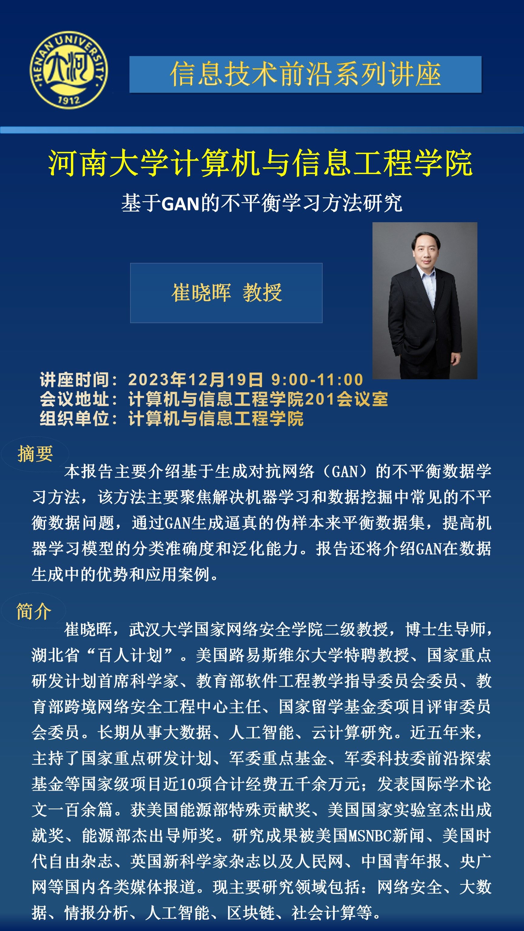 崔晓晖:基于GAN的不平衡学习方法研究(时间:12月19日)