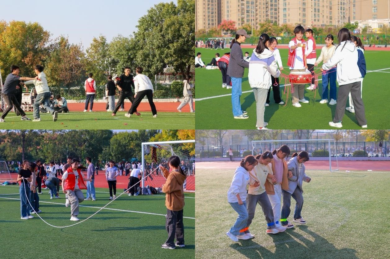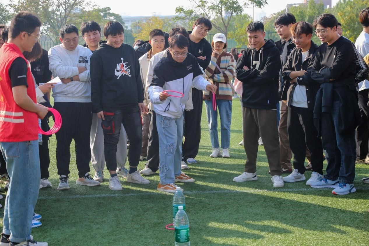 研究生会主办,运动会秉持了“友谊第一,趣味第二”的原则,共分为“跨障运水接力赛、抓尾巴、同心击鼓、吹杯子、跳大绳、多人多足、团体套圈以及解忧树洞”八个项目。每个项目都有着不同的规则,有的项目需要同学们团结一致,相互配合,有的项目则需要同学们充分展现个人能力。同学们根据自己的兴趣爱好,报名参加了不同的运动项目,充分发挥了自己的特长与优势。