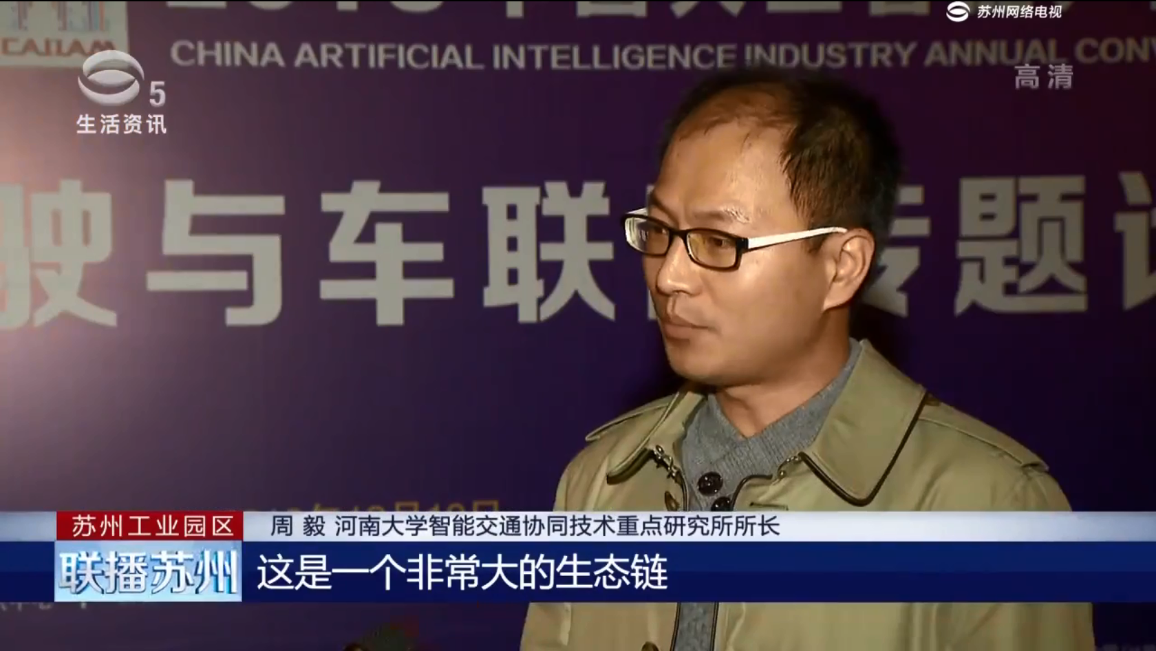 报告结束之后,周毅老师分别接受了环球时报、新华社瞭望周刊、苏州电视台以及AI报道等记者的专题采访,就智能网联汽车生态链发展、车联网V2X技术与智慧交通产业的融合落地等话题进行了讨论,周毅老师针对V2X技术在行业细分领域的应用情况,以港口、园区、矿山等相对封闭区域内车联网应用的典型技术实现为例,肯定了V2X技术的应用前景,并对河南省人工智能三年行动计划以及智能网联汽车的未来发展进行了展望。
