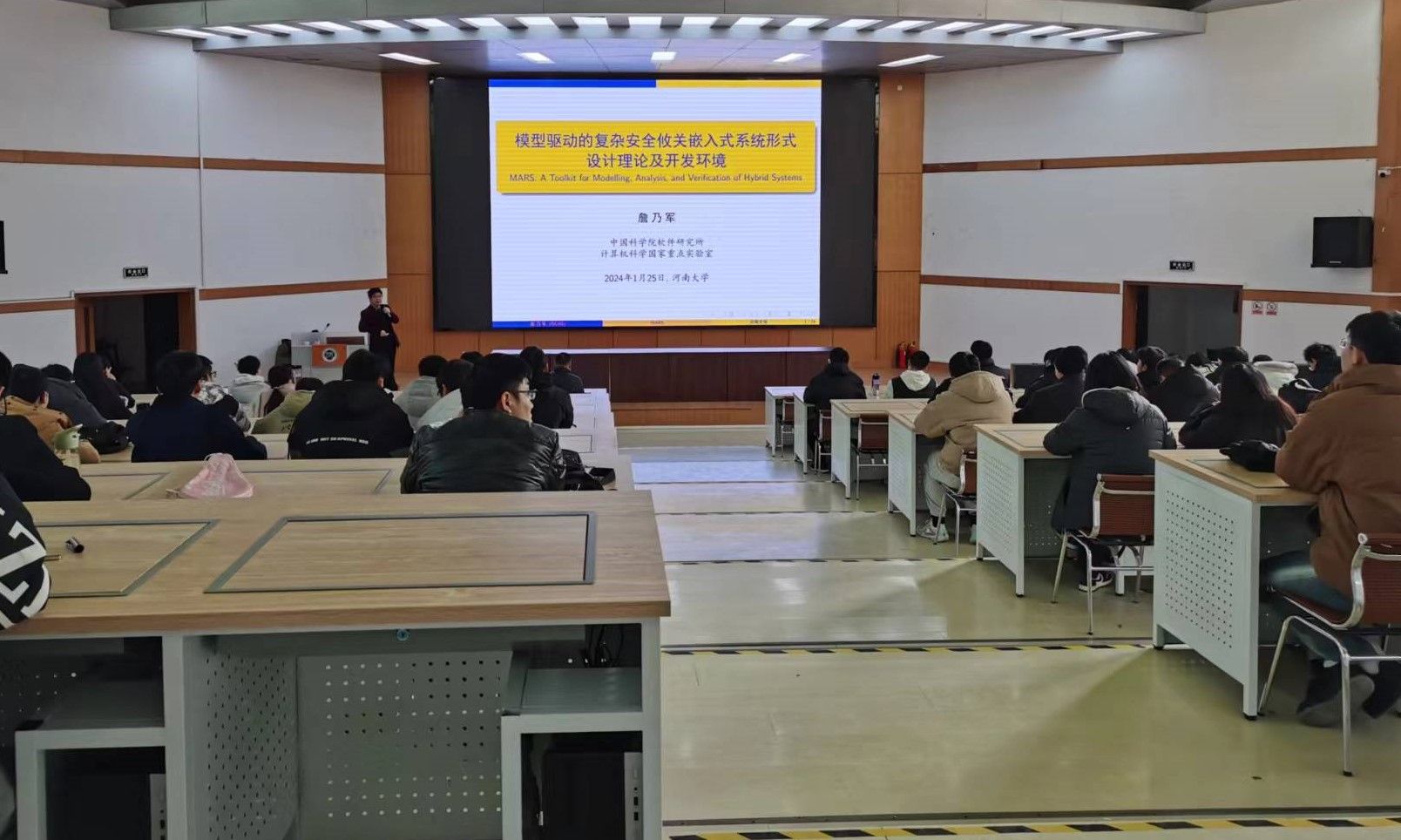 1月25日下午,大赢家足球比分 邀请中国科大赢家足球比分 詹乃军教授为大赢家足球比分 师生作主题为《模型驱动的复杂安全攸关嵌入式系统形式设计理论及开发环境》的学术报告,报告会由大赢家足球比分 副院长左宪禹教授主持。报告会在大赢家足球比分 201会议室举行,大赢家足球比分 教师和研究生参加了本次报告会。