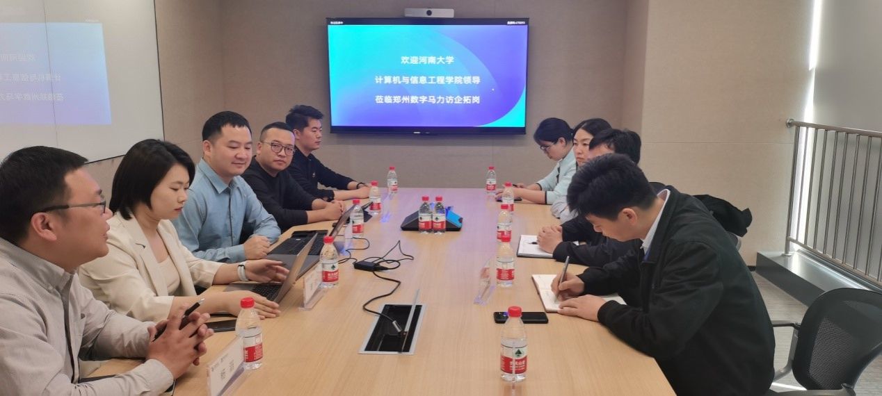 执行院长韩道军、党委副书记张大帅、计算机系党支部书记赵雅靓、研究生辅导员周星、2021级本科生辅导员孙洁一行五人,前往数字马力(郑州)信息技术有限公司开展访企拓岗交流活动。