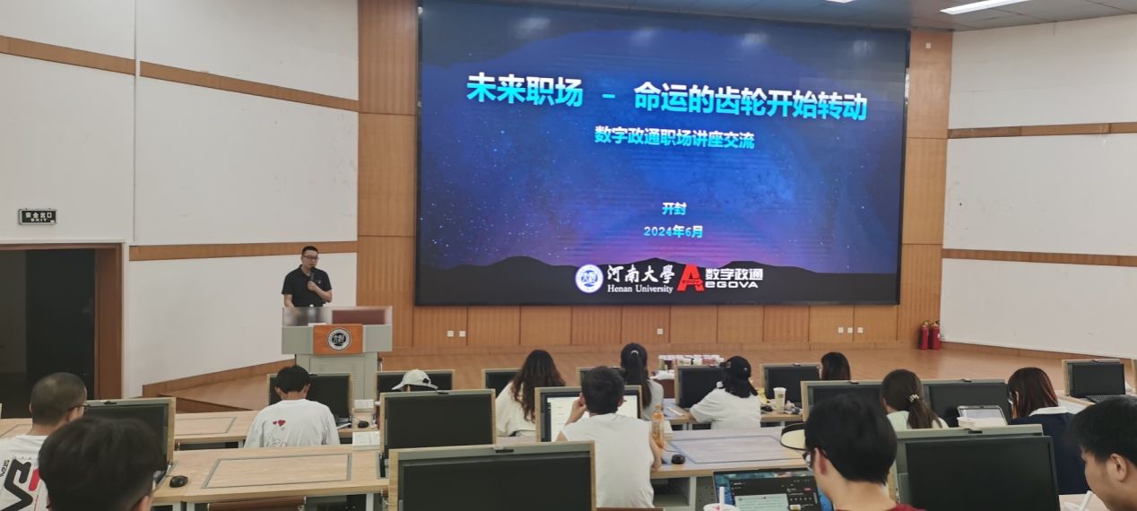 胡威结合自己的职业发展轨迹和职场经验,通过大量详实的数据对当前IT行业的就业形势进行了具体的分析,鼓励在校大学生积极了解就业市场行情,用科学的方法评估自己,认真思考并明确自己的发展方向。胡威还向大家介绍了计算机专业的四种职场就业方向,鼓励大家根据自己的具体能力水平多维度思考求职岗位方向,并结合他做HR的经验,对简历撰写和笔试面试等方面介绍了很多宝贵的技巧。同时,胡威还以举例的方式为同学们分享了一些职场通用知识,如金字塔思维、四象限法则、法定五险一金等内容。最后,胡威向参会同学具体介绍了数字政通公司的背景规模、核心业务领域、技术发展轨迹及校企合作情况,并欢迎河南大学相关专业的同学到企业实习。