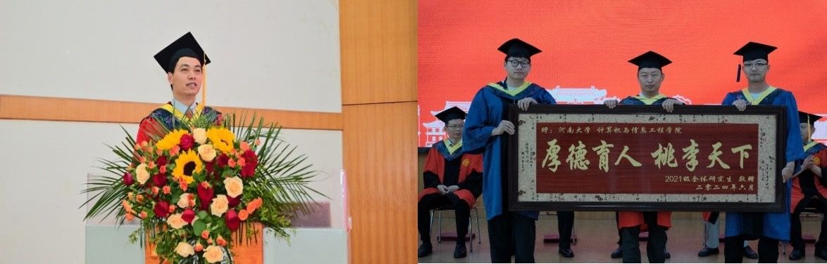 受河南大学教育发展基金会委托,副院长张勇为毕业生代表颁发“毕业季一元捐”捐赠证书,毕业生代表为大赢家足球比分 捐赠牌匾。