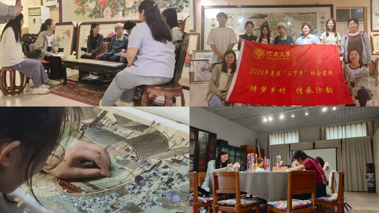 “绣梦乡村,传承汴韵”社会实践团队在广泛查阅相关文献资料的基础上,通过实地参观汴绣艺术博物馆、考察工坊,深入感受国家级非物质文化遗产——汴绣的历史底蕴和艺术魅力,并与汴绣的传承人王素花进行面对面交流和深度访谈。为了更直观地理解汴绣的艺术精神和技巧,团队成员亲身体验汴绣的制作过程,进一步加深了对传统文化的尊重和热爱。在征得相关工作人员同意后,实践团队还拍摄了宣传短片,并通过社交媒体平台积极传播,推动汴绣文化在青年群体中知名度的提升,促进汴绣艺术的传承与发展。