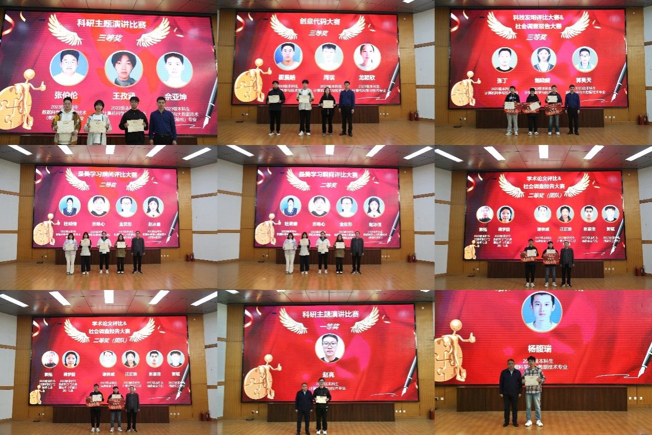张大帅宣读了本届IT科技文化节的获奖名单,与会领导为获奖者颁发证书。2022级本科生赵亮作为获奖代表发言。他分享了自己参加比赛的心路历程,鼓励大家勇敢尝试,积极参与各种竞赛,在具体实践中探索和发现自己的潜能,锻炼和提升各方面综合素质,以开放进取的心态,拥抱挑战和未知,度过充实而有意义的大学生活。
