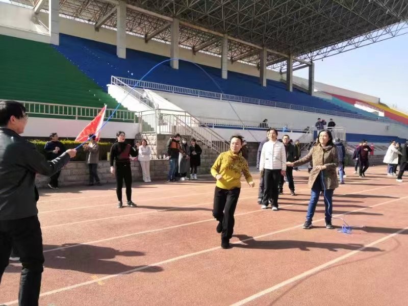 党委、工会组织全体教职工在金明校区志义体育场举行“三八”国际劳动妇女节趣味运动会,运动会共设3个项目:慢跑、跳长绳、赶羊穿林。