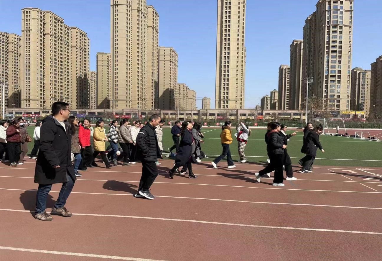今天阳光灿烂,暖风拂面,运动会现场气氛热烈、竞展风采。慢跑结束后,老师配合照相机镜头摆出胜利的姿势,发出胜利的呐喊;跳大绳与赶羊穿林活动分系室进行,老师们为了取得好的成绩,“奋不顾身”使出浑身解数。跳大绳活动中,摇绳和跳绳的老师们配合默契,绳子在脚底“嗖嗖”穿过,跳出了团结和协作的力量;赶羊穿林活动中,老师们你追我赶,绕过一个个障碍,稳健快步向前走,比赛中频出的各种“小事故”,逗得大家捧腹大笑,老师们尽情享受着运动带来的乐趣。