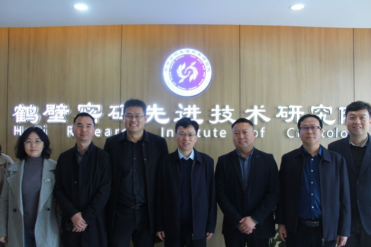 执行院长韩道军、副院长任小金、左宪禹,信息安全系主任杜晓玉、支部书记张磊等一行5人前往鹤壁密码先进技术研究院进行调研与交流,鹤壁市密码管理局副局长韩震、局办公室主任李东昌、鹤壁密码先进技术研究院院长甄亚春、研发工程师李坤等参加座谈交流。