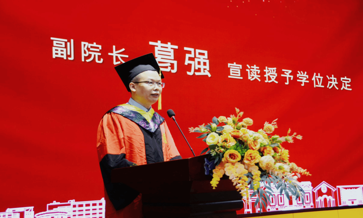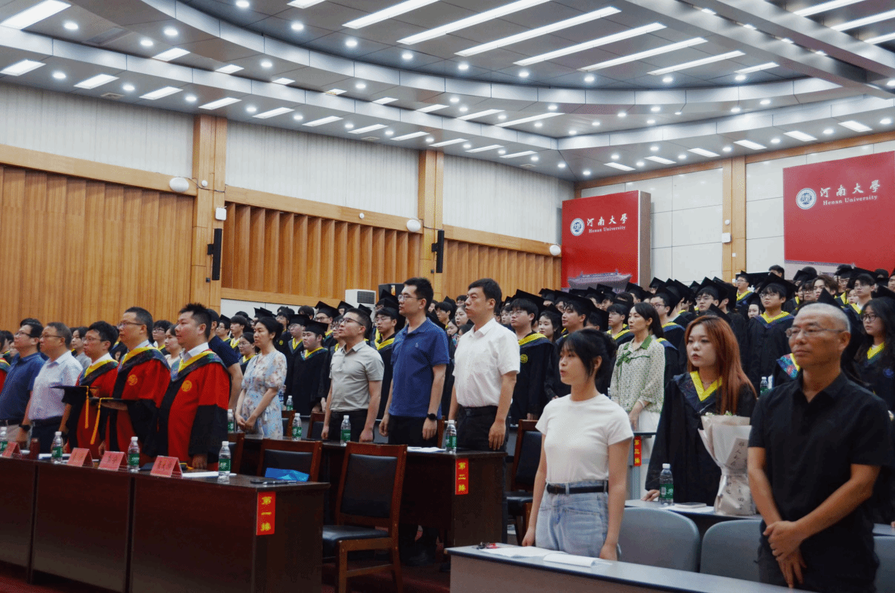 毕业典礼在庄严的国歌中拉开帷幕。副院长葛强宣读《河南大学关于授予普通本科毕业生学士学位的决定》。