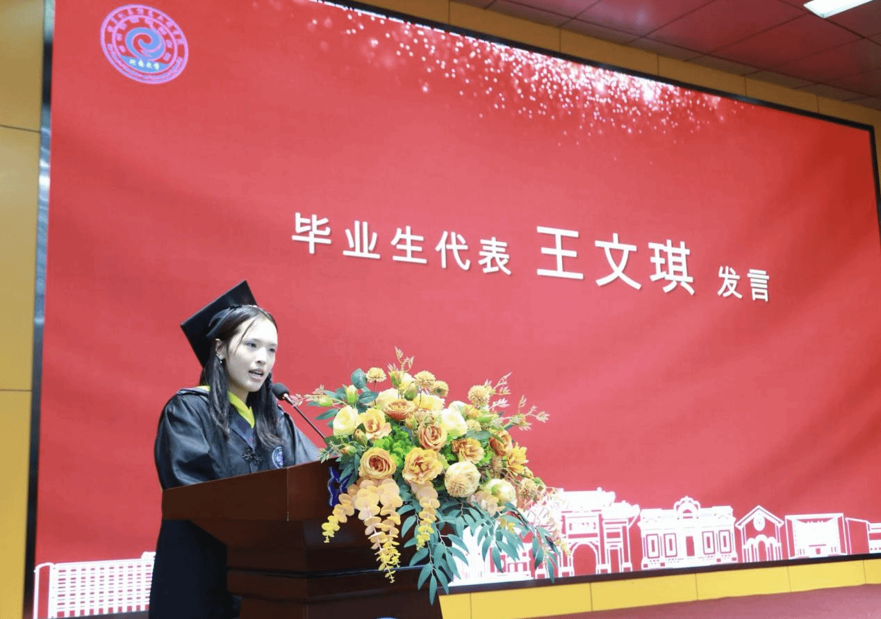 在校生代表2023级杜明倩向学长学姐表达了衷心感谢,感谢他们曾经给予的帮助与支持。也携着在校生们的深深眷恋与美好期许,为学长学姐们献上最美的祝福与诚挚的祝愿。
