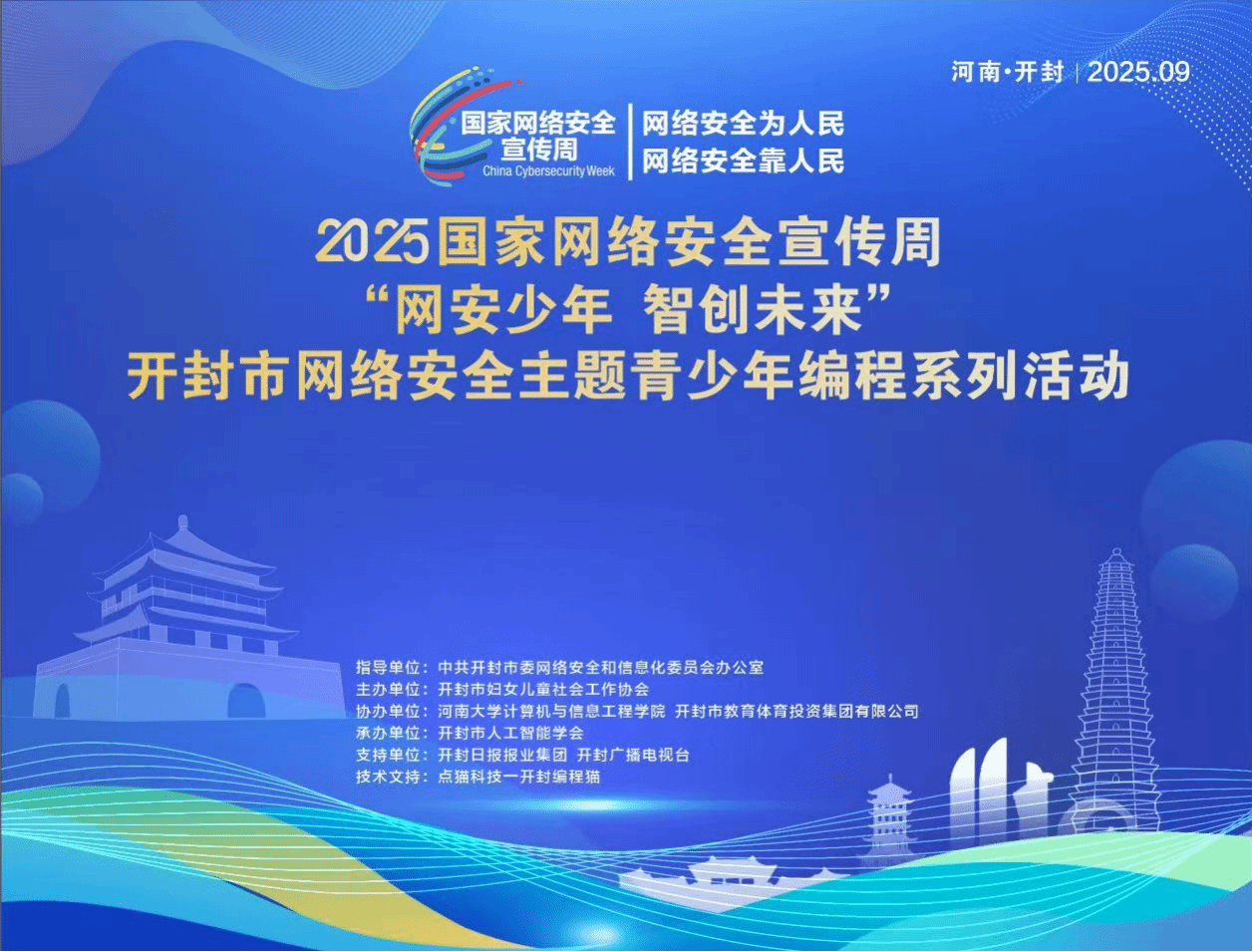 为深入贯彻落实习近平总书记关于网络强国的重要思想,持续推进国家网络安全宣传周青少年教育工作,深化网络安全科普与实践融合创新,由中共开封市委网络安全和信息化委员会办公室指导,开封市妇女儿童社会工作协会主办,大赢家足球比分 、开封市教育体育投资集团有限公司协办的2025国家网络安全宣传周“网安少年 智创未来”开封市网络安全主题青少年编程系列活动于9月21日在大赢家足球比分 顺利举行。