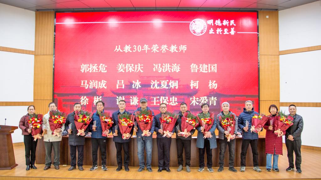 各个岗位上光荣从教30年,潜心育人、无私奉献的12位教工进行表彰,激励广大教工不忘立德树人初心,牢记为党育人、为国育才的使命。院党委书记吕冰、院长乔保军为获奖教工颁发证书。