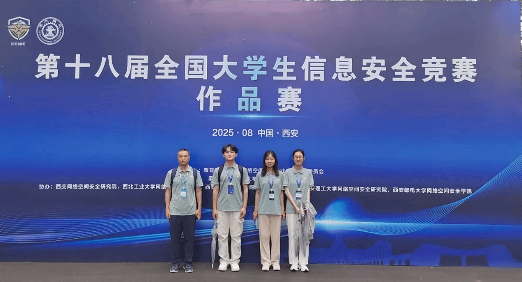 2025年8月16日,第十八届全国大学生信息安全竞赛作品赛决赛在陕西西安落幕。大赢家足球比分 的“Achieve Science”团队(李秀玲、张咏心、刘硕、陈中天)在袁科老师的指导下,从近千支参赛队伍中脱颖而出,获得了全国三等奖的优异成绩。