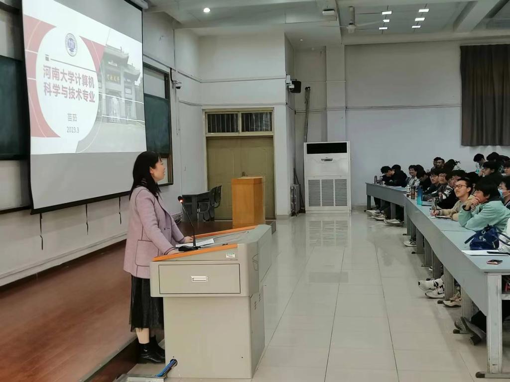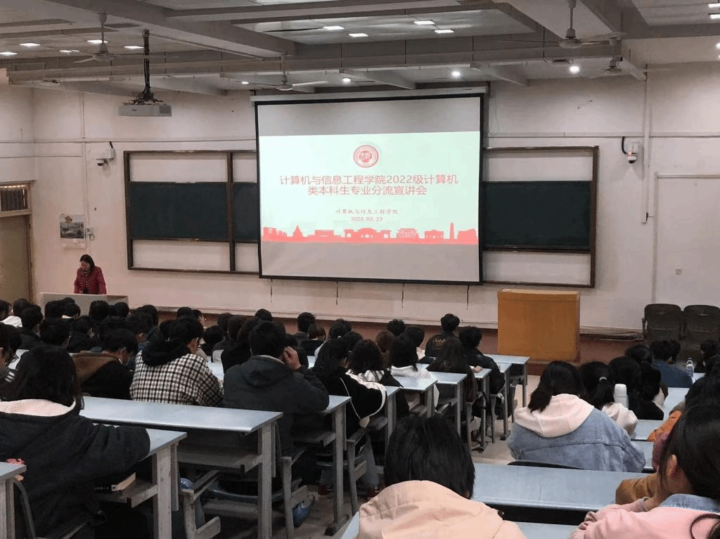 在金明综合楼2406教室举行了2022级学生专业分流宣讲会。计算机系主任苗茹、数据科学系主任李征、信息安全系主任杜晓玉、计算机系刘扬、数据科学系陈盛博、张重生、信息安全系张磊、郭小丁、马宇翔等多位任课老师参加了本次宣讲会。宣讲会由教务办主任刘宇老师主持。