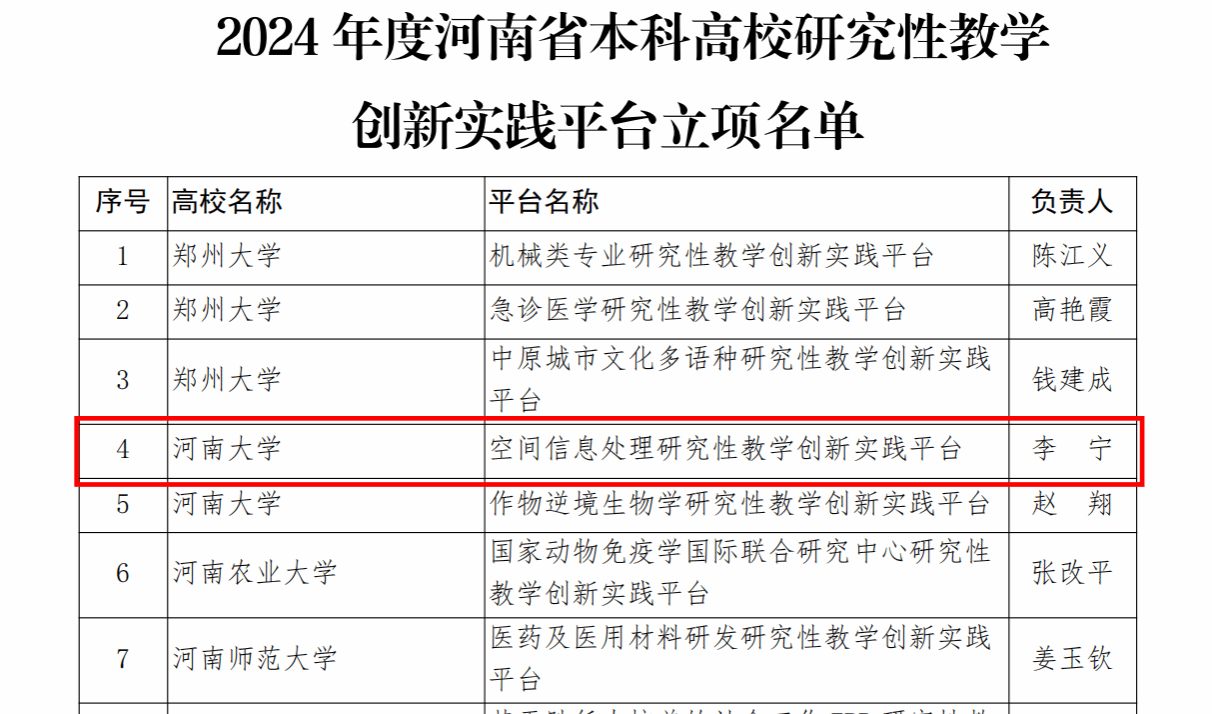 空间信息处理研究性教学创新实践平台依托河南省空间信息处理工程研究中心建设,在时空信息处理基础理论研究、遥感大数据处理关键技术研究、空间信息系统研发和工程应用三方面开展创新性基础研究和应用基础研究,是大赢家足球比分