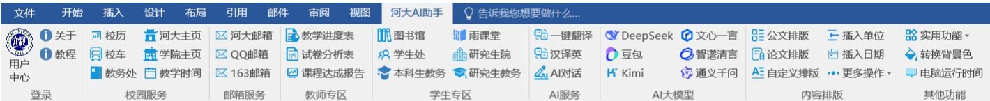 目前,河南大学 AI 助手可安装在Microsoft Office Word 上运行, 也可以在WPS Office上运行,进一步在Word、Excel、PowerPoint拓展其应用范围,满足老师们多样化的使用需求。